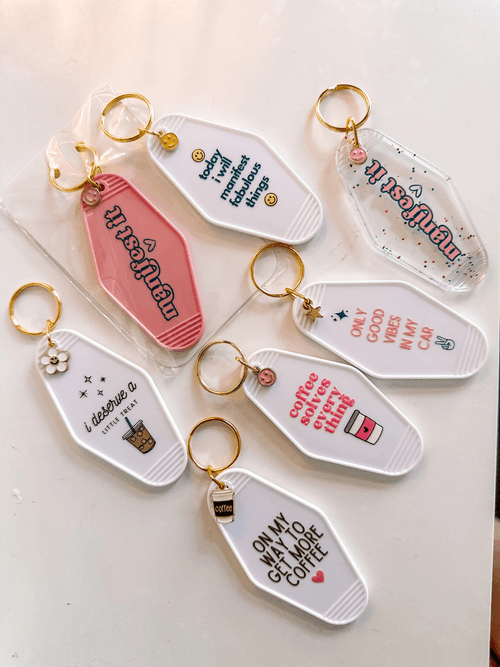 In this bundle you'll get 16+ different style charms, plus 15 assorted keychain blanks. Also, you'll get the gold jump rings to hang them from the keychain.